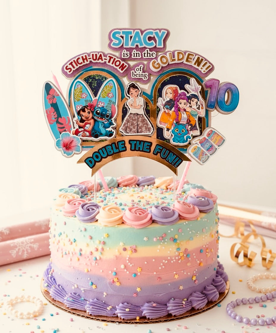 Make birthdays extra special with our handcrafted custom cake toppers, designed to steal the spotlight. Each topper is thoughtfully layered with vibrant prints, themed elements, and personalized details like names, ages, and characters — creating a truly one-of-a-kind centerpiece for your cake.